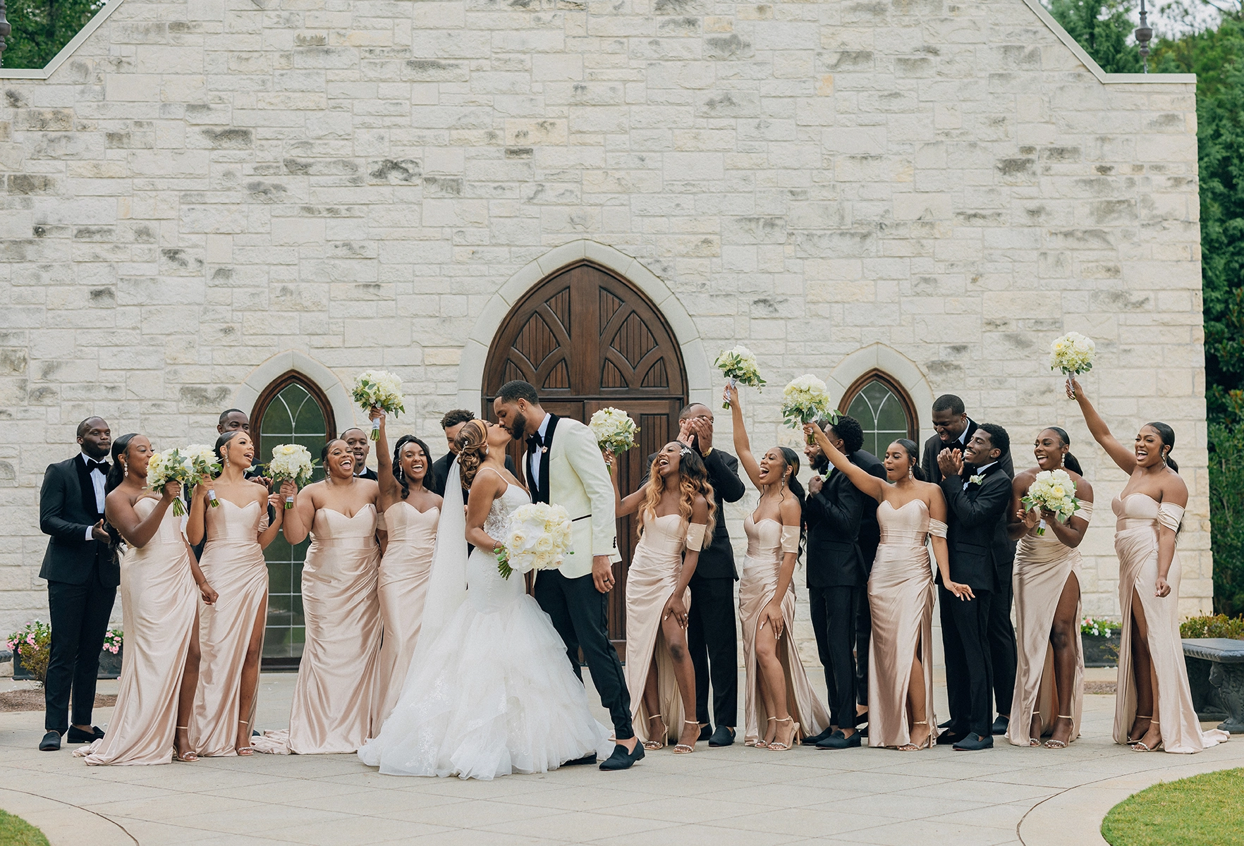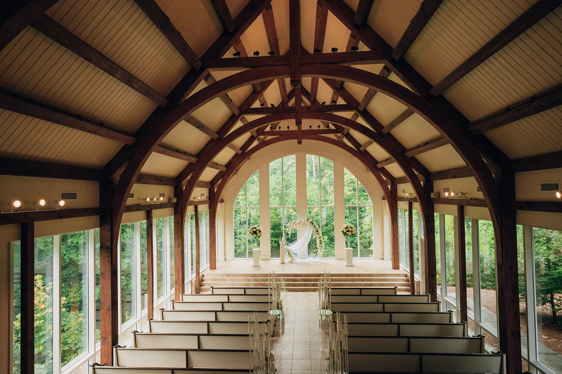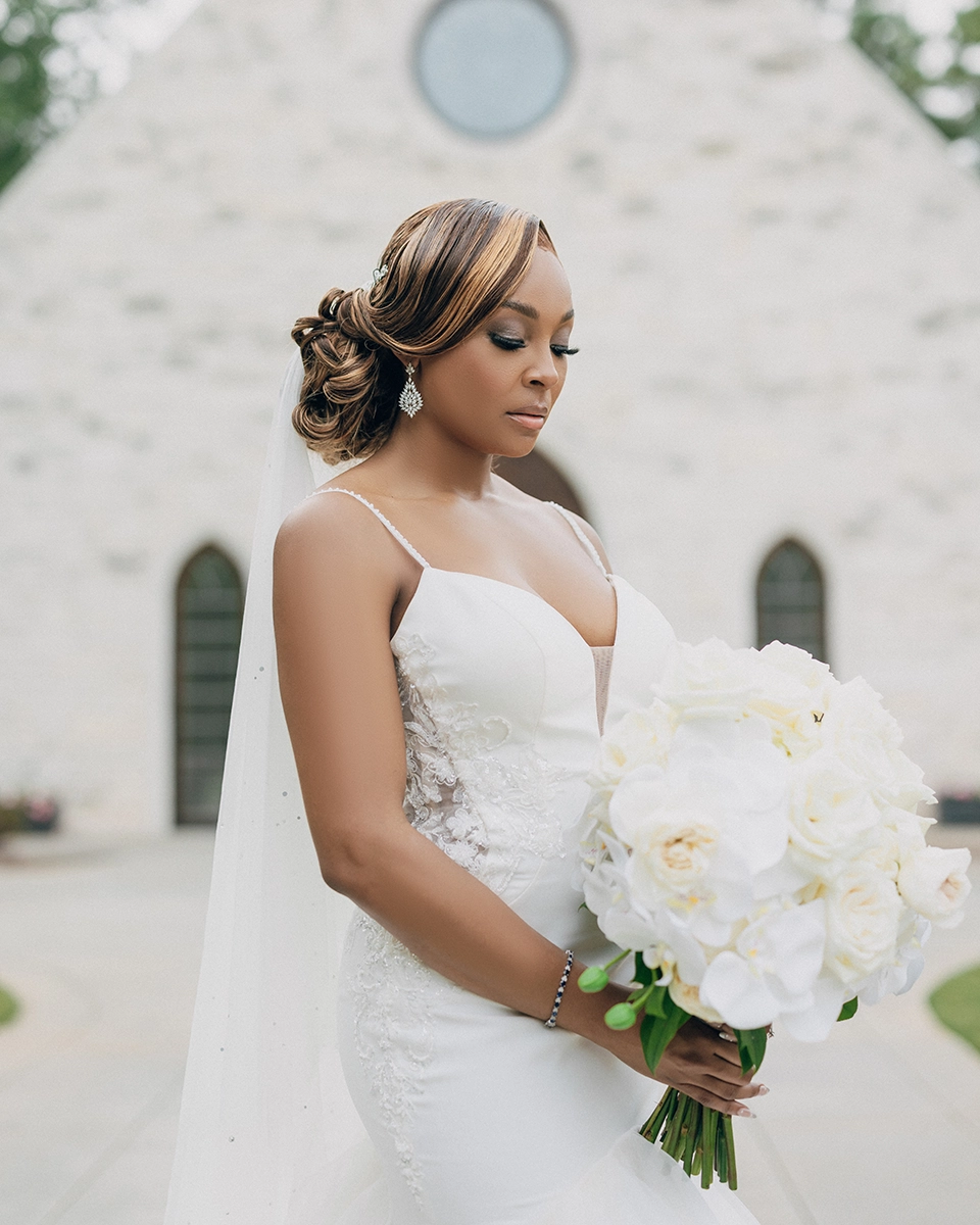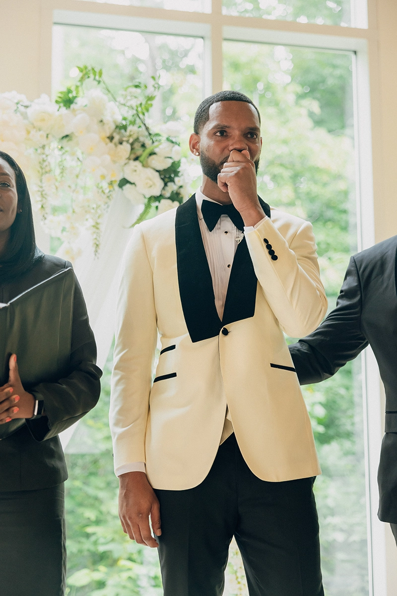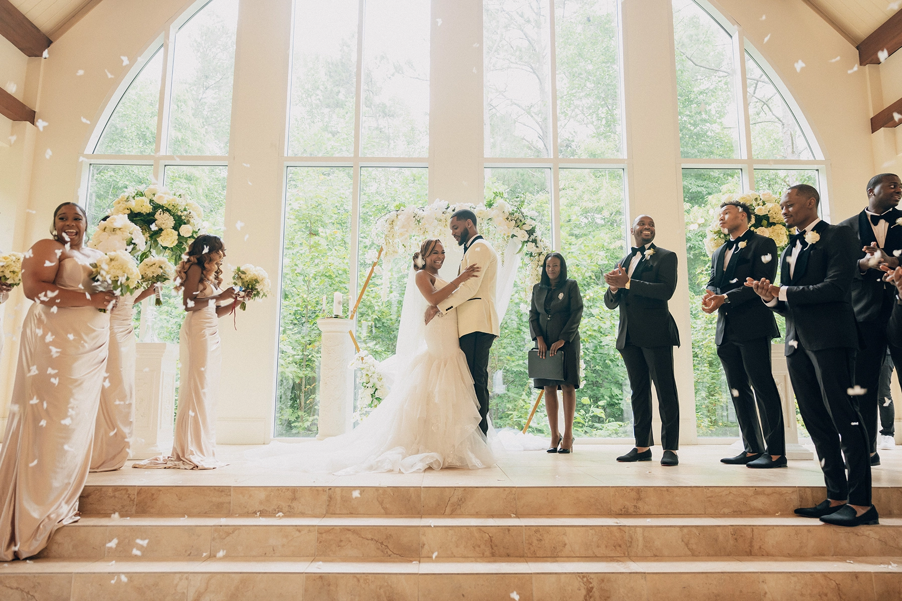 The ceremony took place in the light-filled chapel, where soaring windows and natural light created an airy, bridal backdrop for an all-white floral setting. The moment was made even more unforgettable when the couple released a flurry of delicate white butterflies as they were pronounced husband and wife.