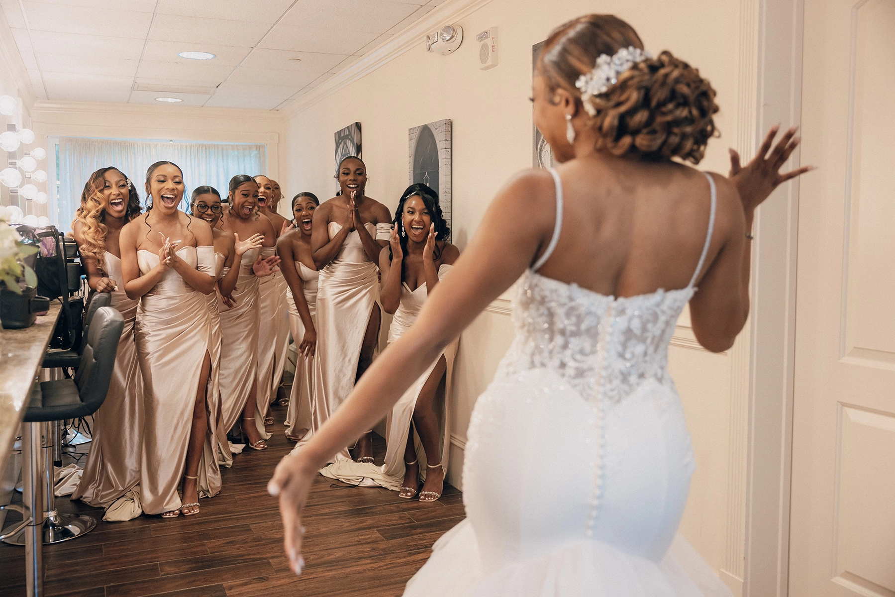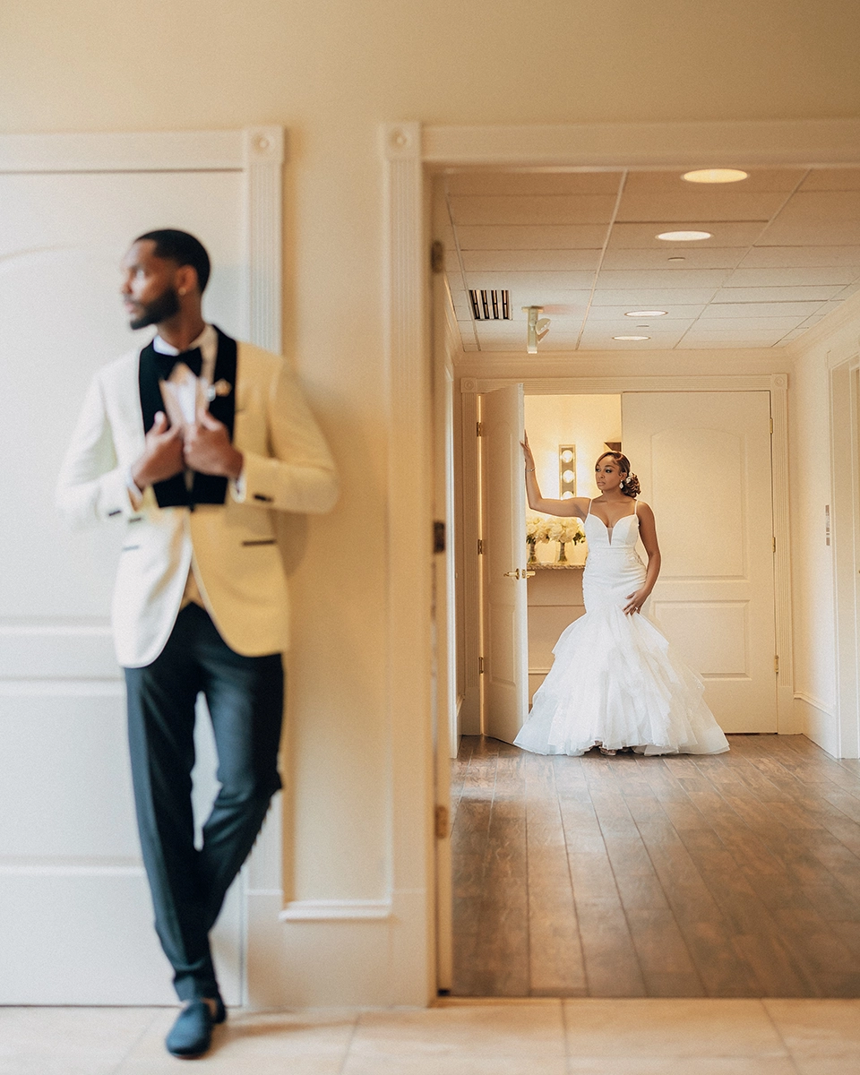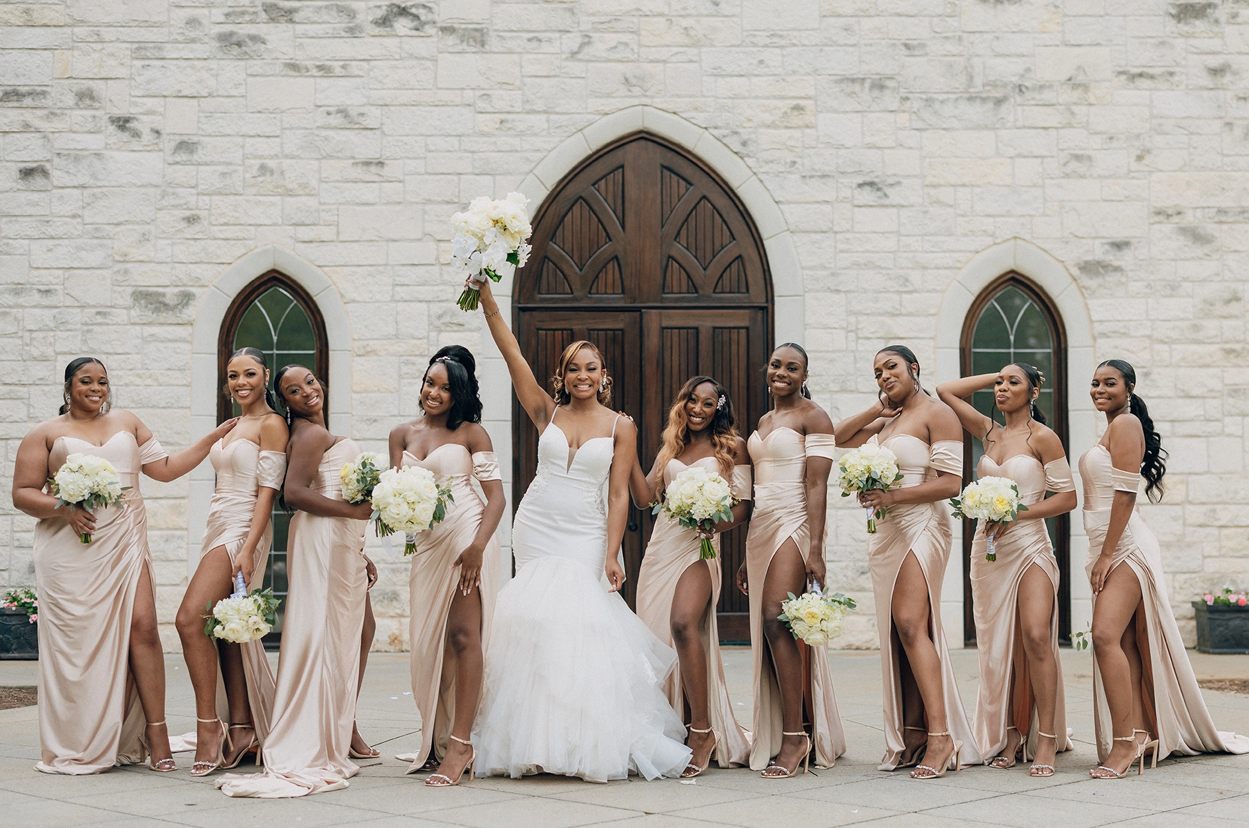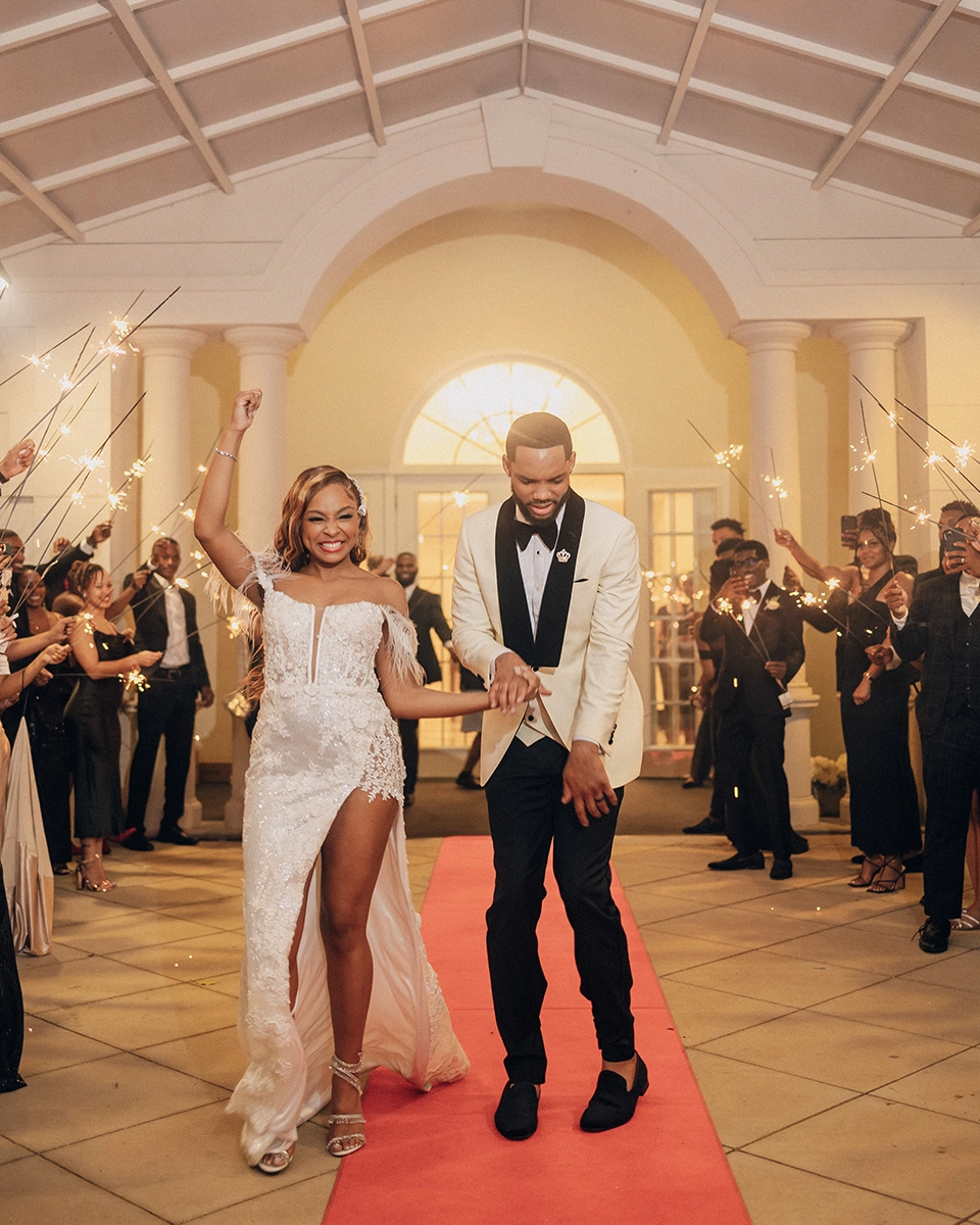The ceremony took place in the light-filled chapel, where soaring windows and natural light created an airy, bridal backdrop for an all-white floral setting. The moment was made even more unforgettable when the couple released a flurry of delicate white butterflies as they were pronounced husband and wife.