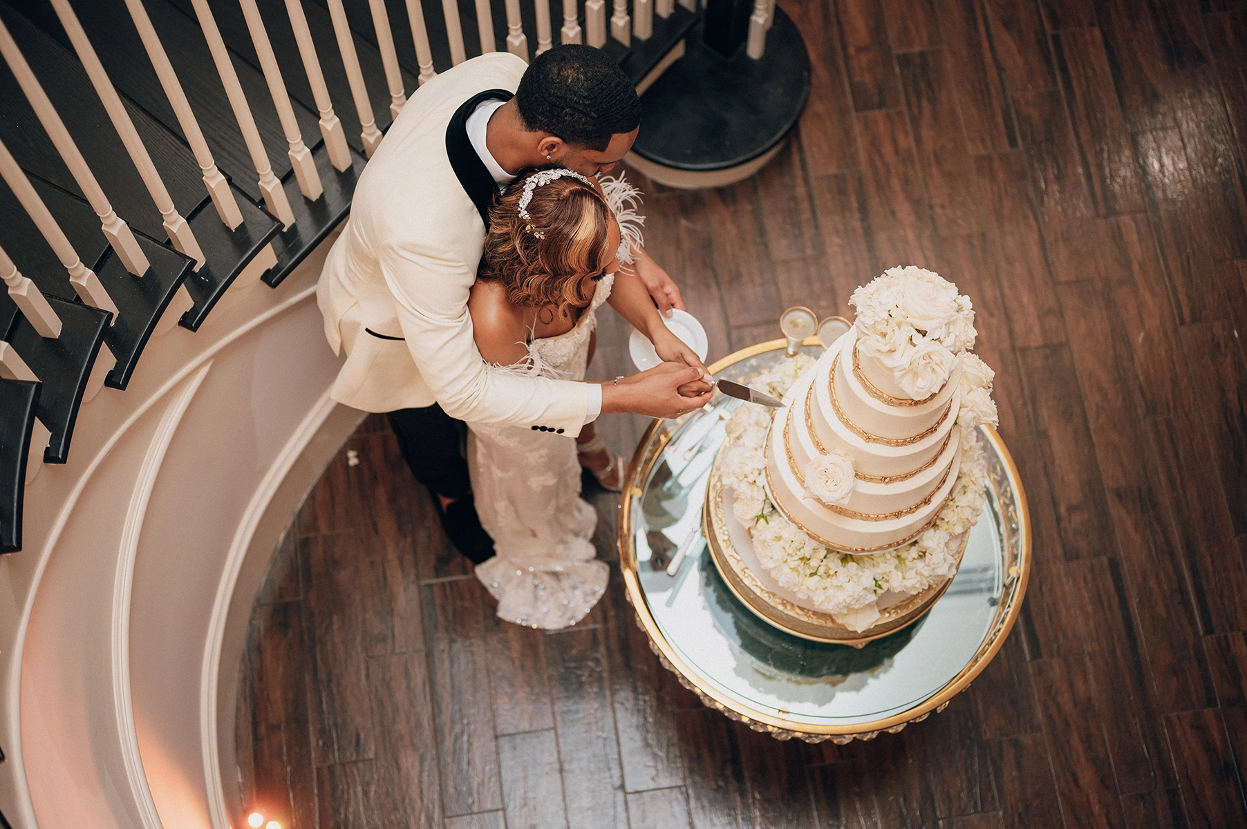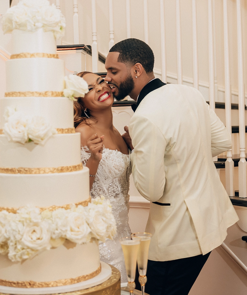 The sweetheart and cake tables stood as statement focal points, accented with mirror finishes and surrounded by lush candlelight. White roses, the bride’s favorite flower, were woven throughout the design, bringing cohesion and timeless romance to every corner of the space.